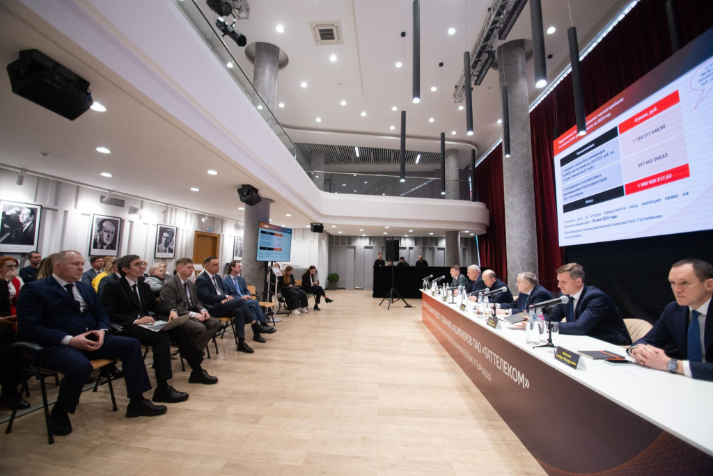 Кворум для проведения голосования обеспечили акционеры, совокупная доля голосующих (обыкновенных) акций которых составила 92,9604 % от их общего числа (19 376 652 972 акции). Заседание возглавил председатель совета директоров ПАО «Таттелеком», в работе президиума принял участие глава Минцифры РТ Илья Начвин.